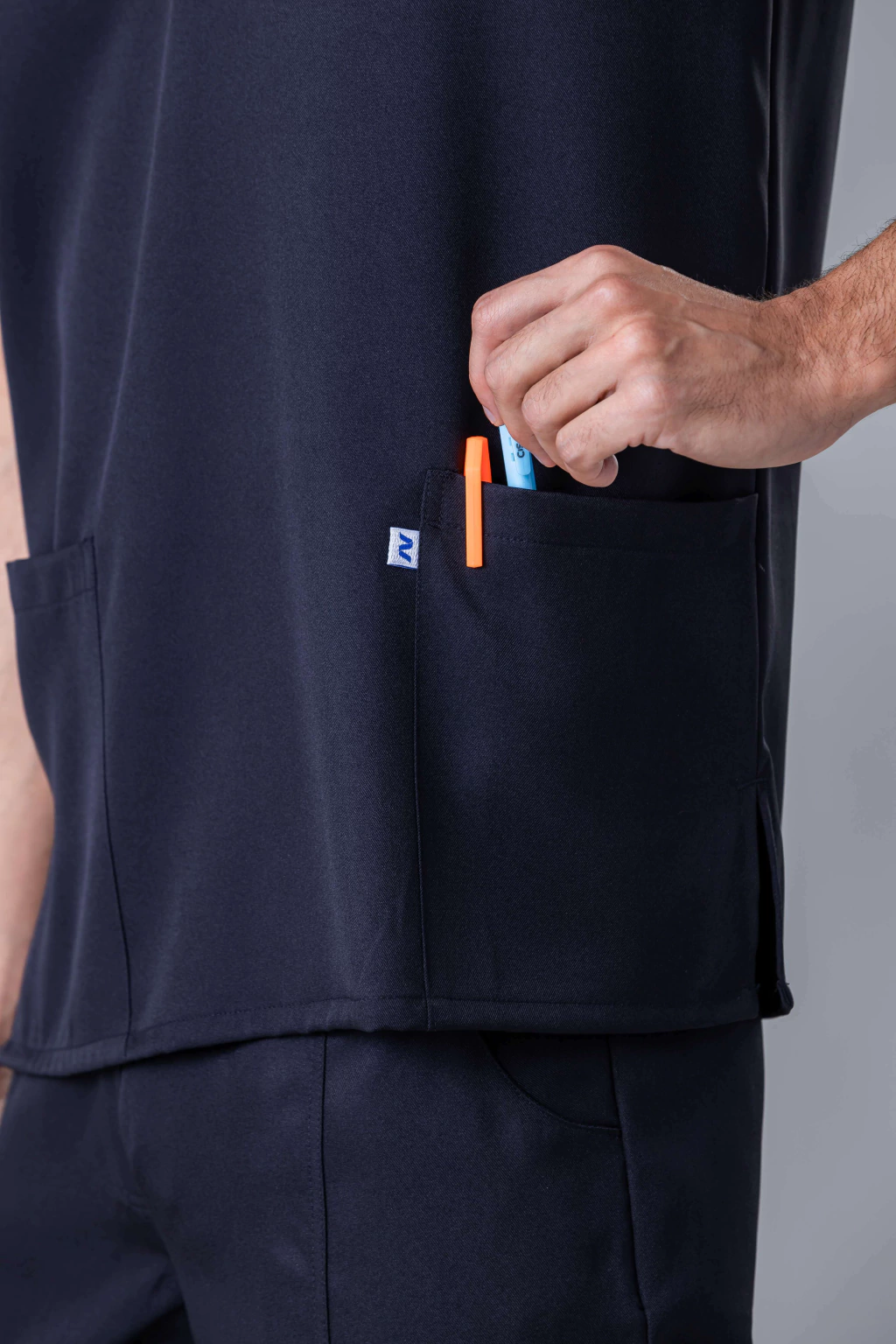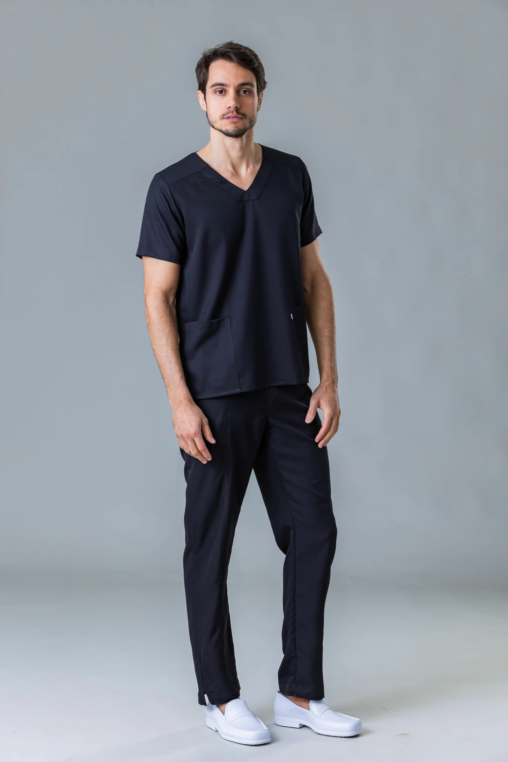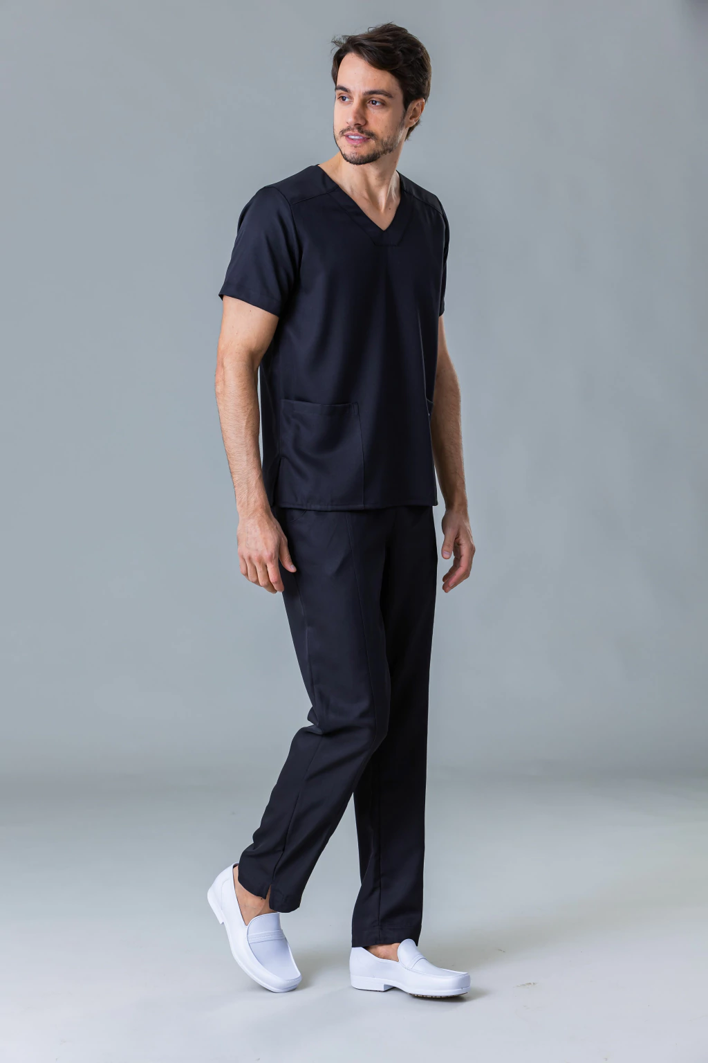 Scrub masculino confeccionado em gabardine, sua gola V e seus bolsos trazem consigo a mobilidade, conforto e praticidade que os profissionais precisam para seu cotidiano no trabalho.